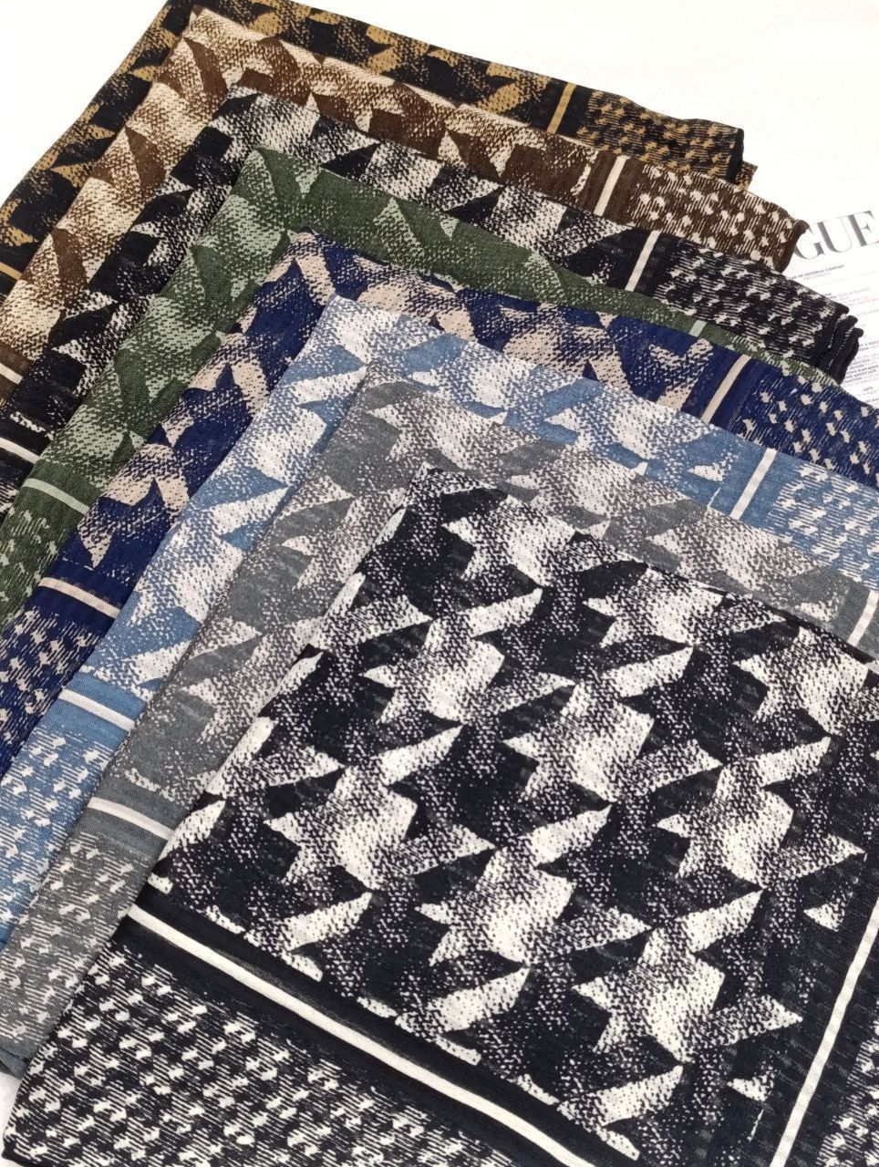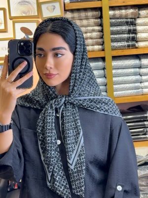 روسری نخی کرپ چاپ خیس دور دست دوز