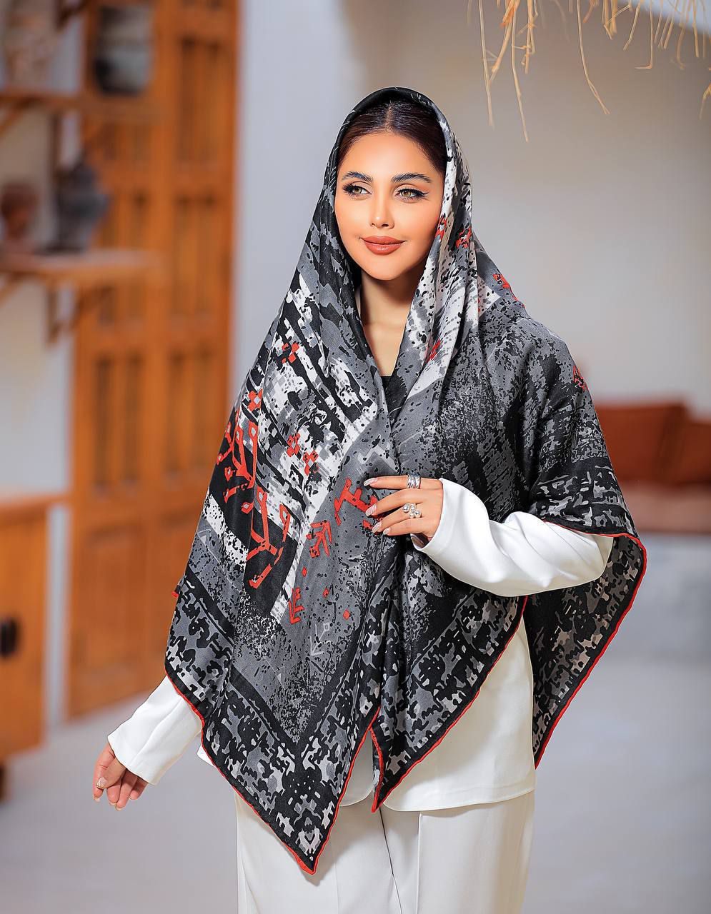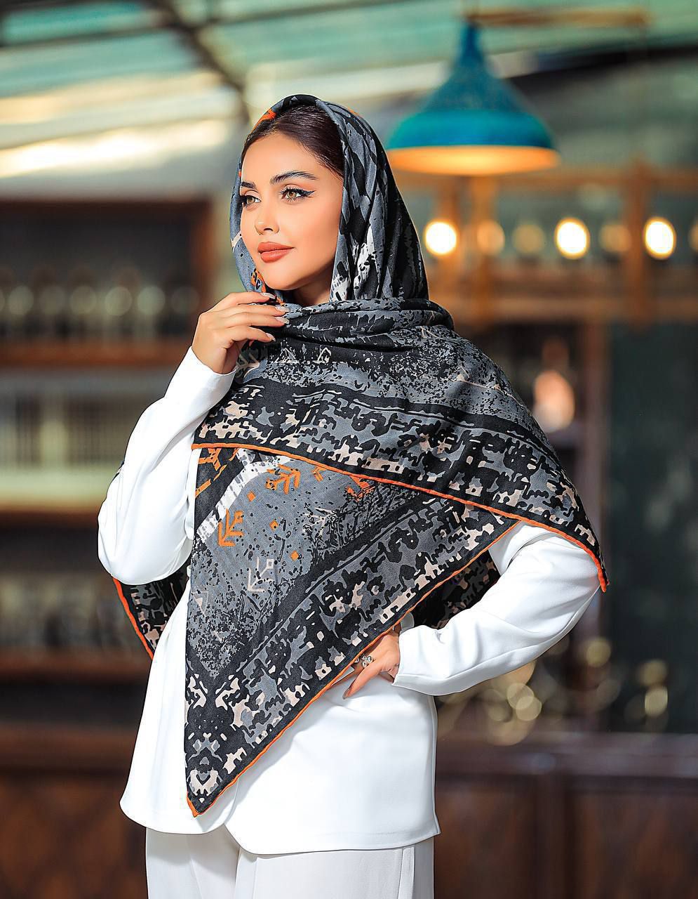 روسری نخی سیا اسکارف پاییزه دور دست دوز