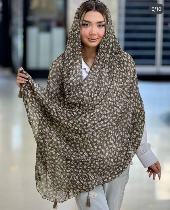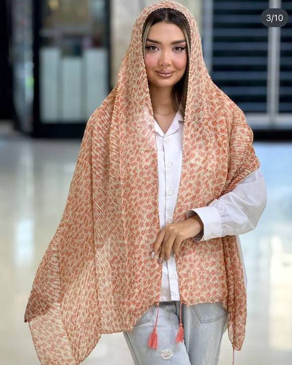 روسری نخی سیااسکارف چاپ خیس دور دوخت