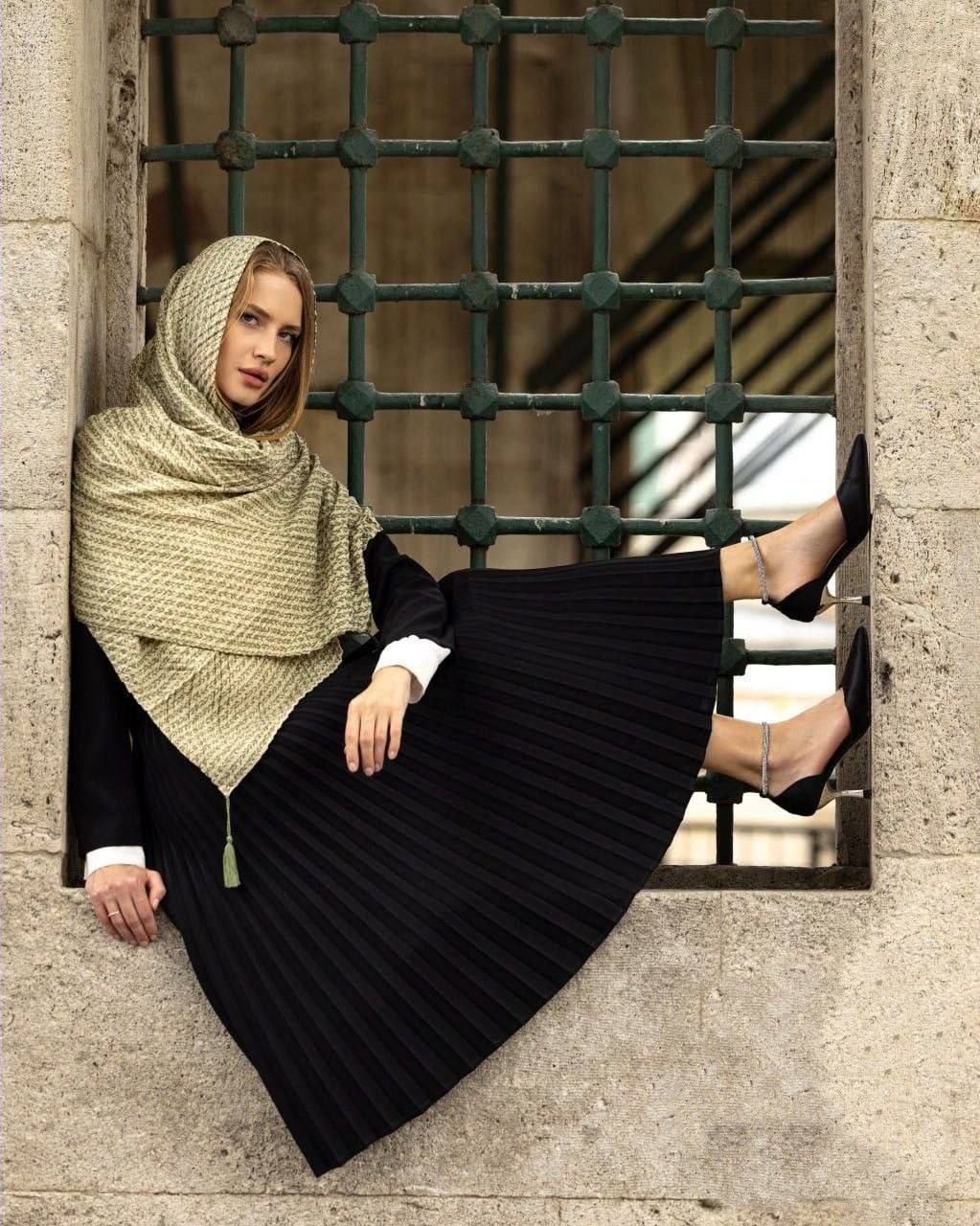 شال نخی پاییزه پلیسه منگوله دار