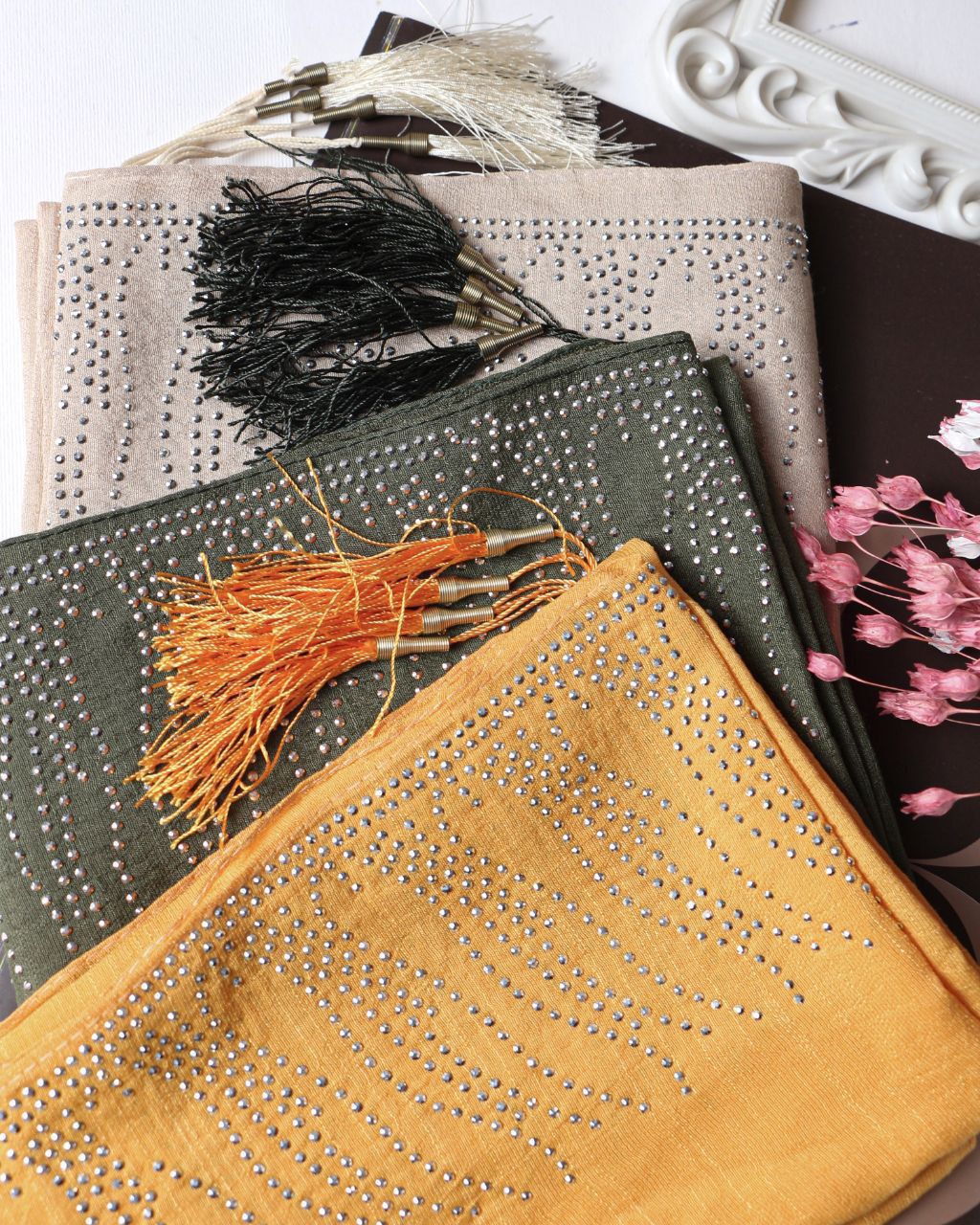 #شال : نخ اسلپ نگینی منگوله دار