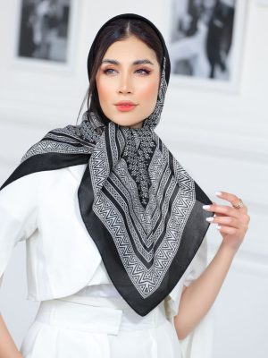 روسری نخ سیااسکارف چاپ خیس دور دوخت